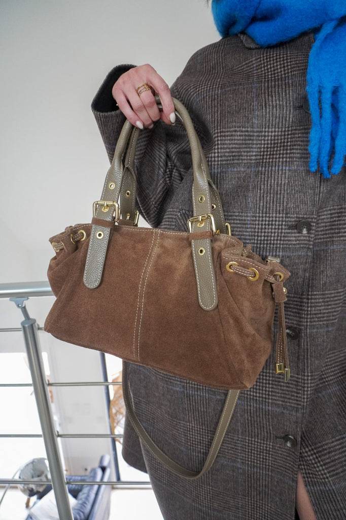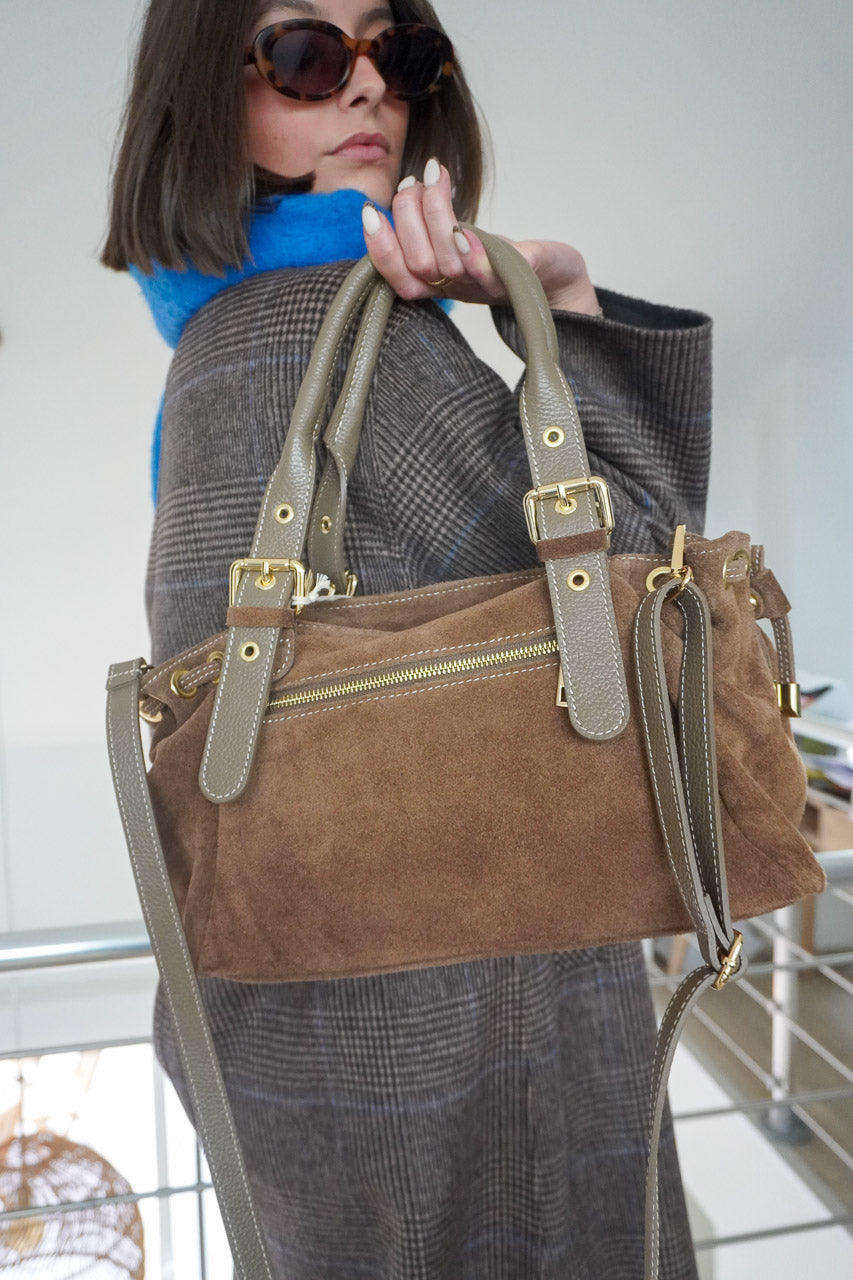 Le sac Jeanne séduit par son allure intemporelle et son élégance naturelle. Confectionné en 100 % cuir, il allie souplesse et tenue parfaite, pour accompagner le quotidien avec style. Sa teinte taupe, douce et raffinée, se marie à merveille avec toutes les palettes de saison. Détails dorés, surpiqûres contrastées et finitions soignées soulignent son esprit chic et fonctionnel. Porté à la main ou à l’épaule grâce à sa bandoulière réglable, il conjugue praticité et féminité en toute simplicité.
