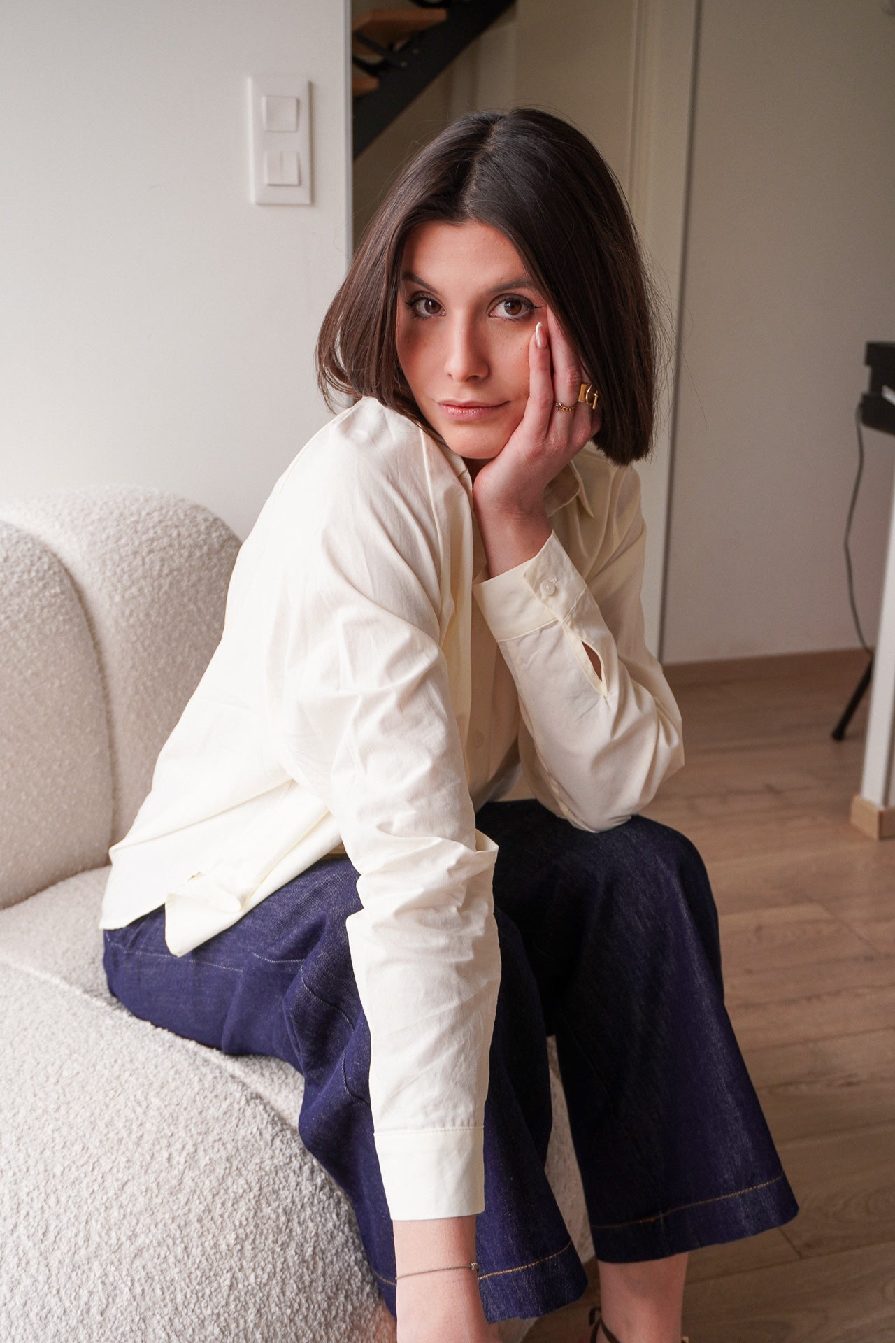 La chemise Bora d’Adoré Paris séduit par sa coupe fluide et son coloris crème lumineux, parfait pour illuminer vos tenues du quotidien.