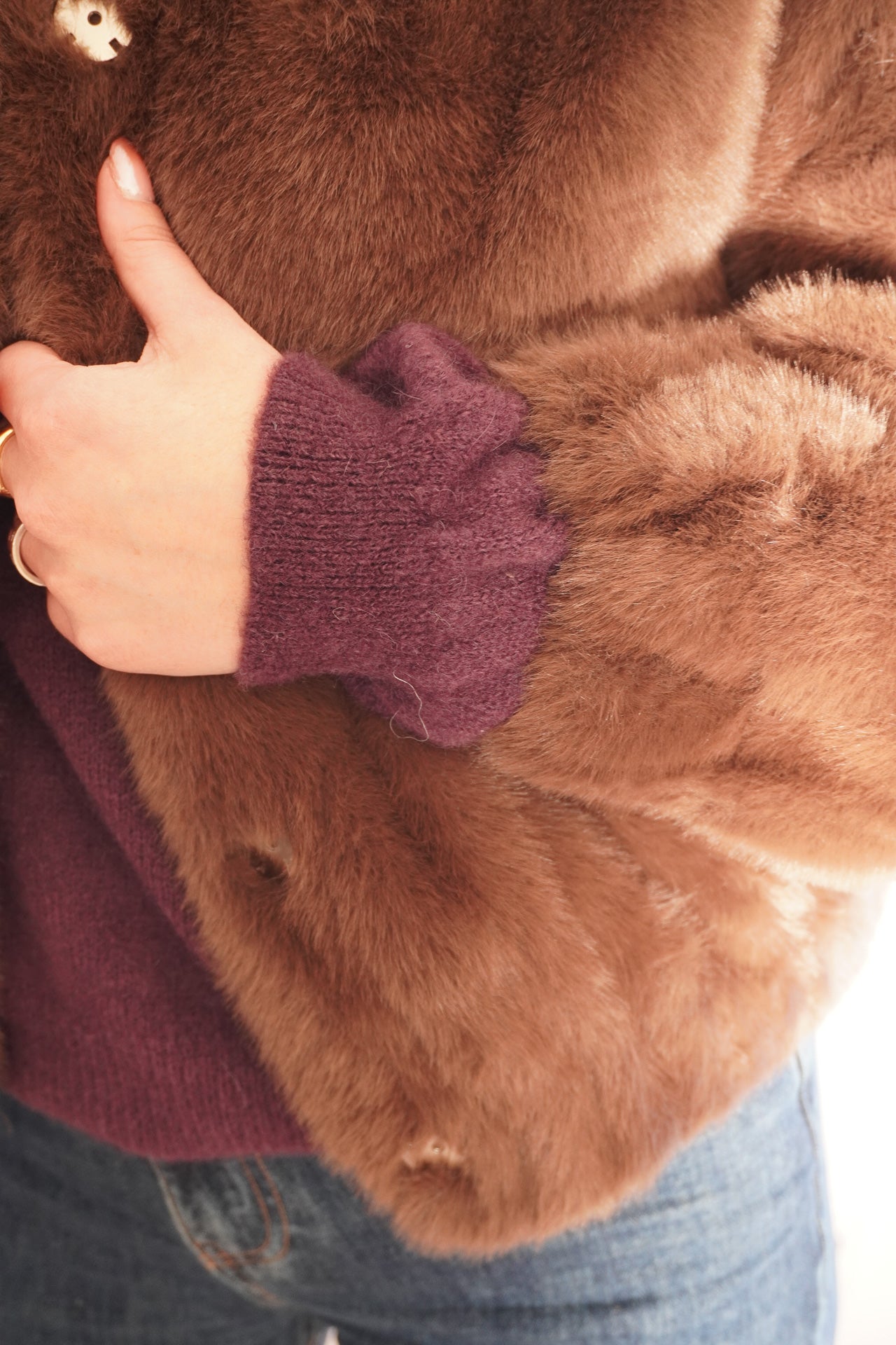 La veste Milana se décline ici dans un magnifique coloris chocolat, riche et lumineux, idéal pour réchauffer instantanément vos tenues hivernales. Signée Adoré Paris, elle offre tout le charme d’une fausse fourrure premium, douce, moelleuse et incroyablement confortable.