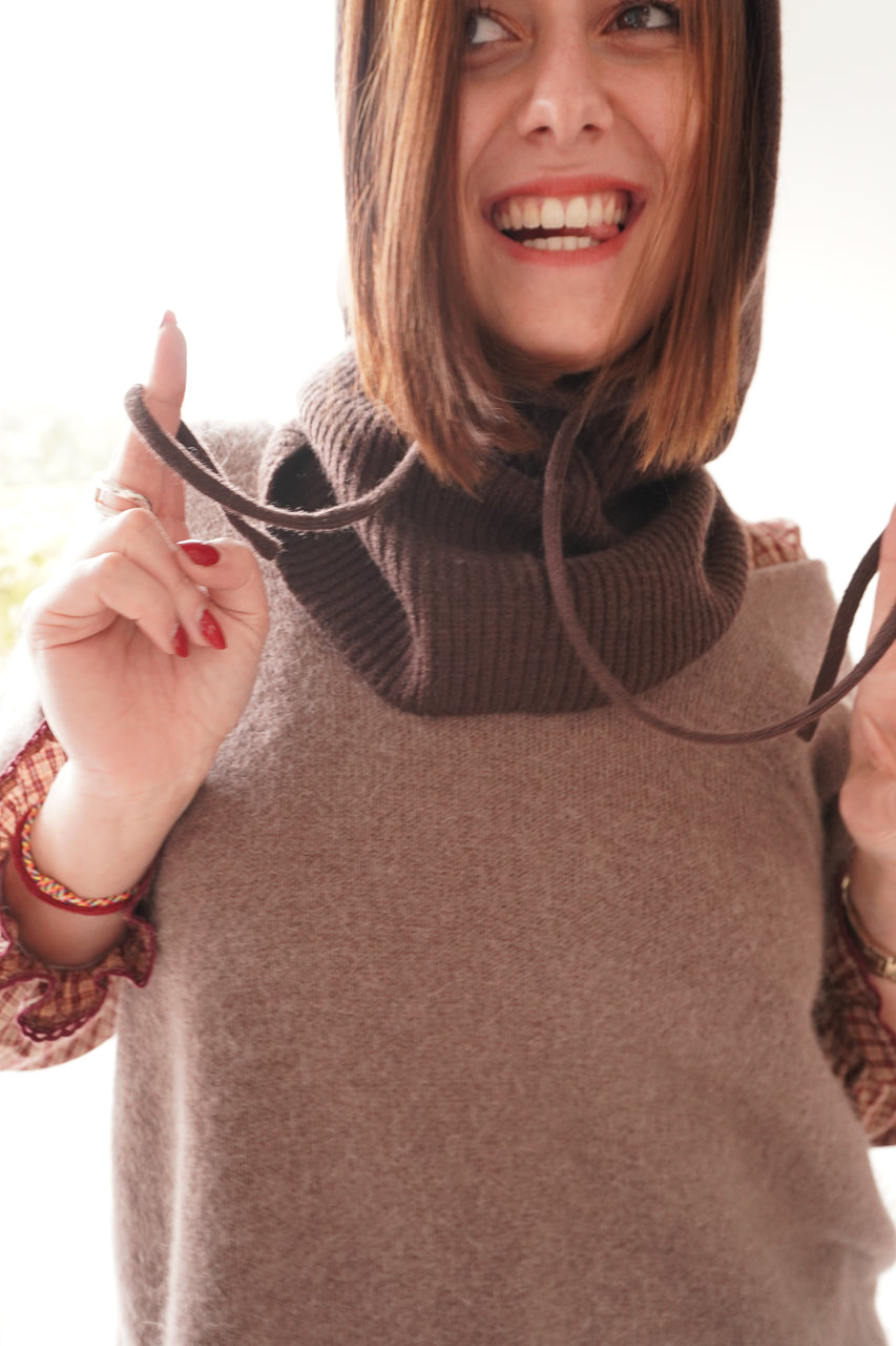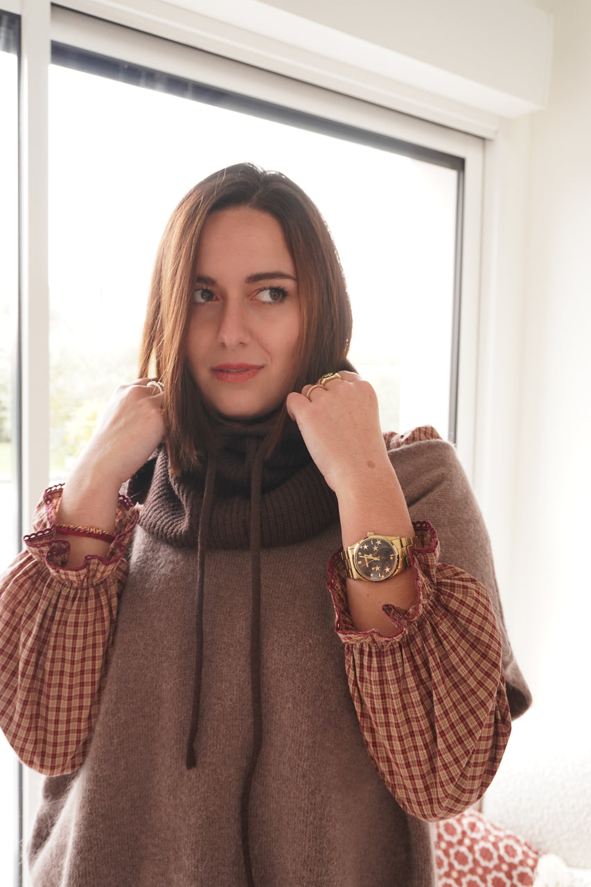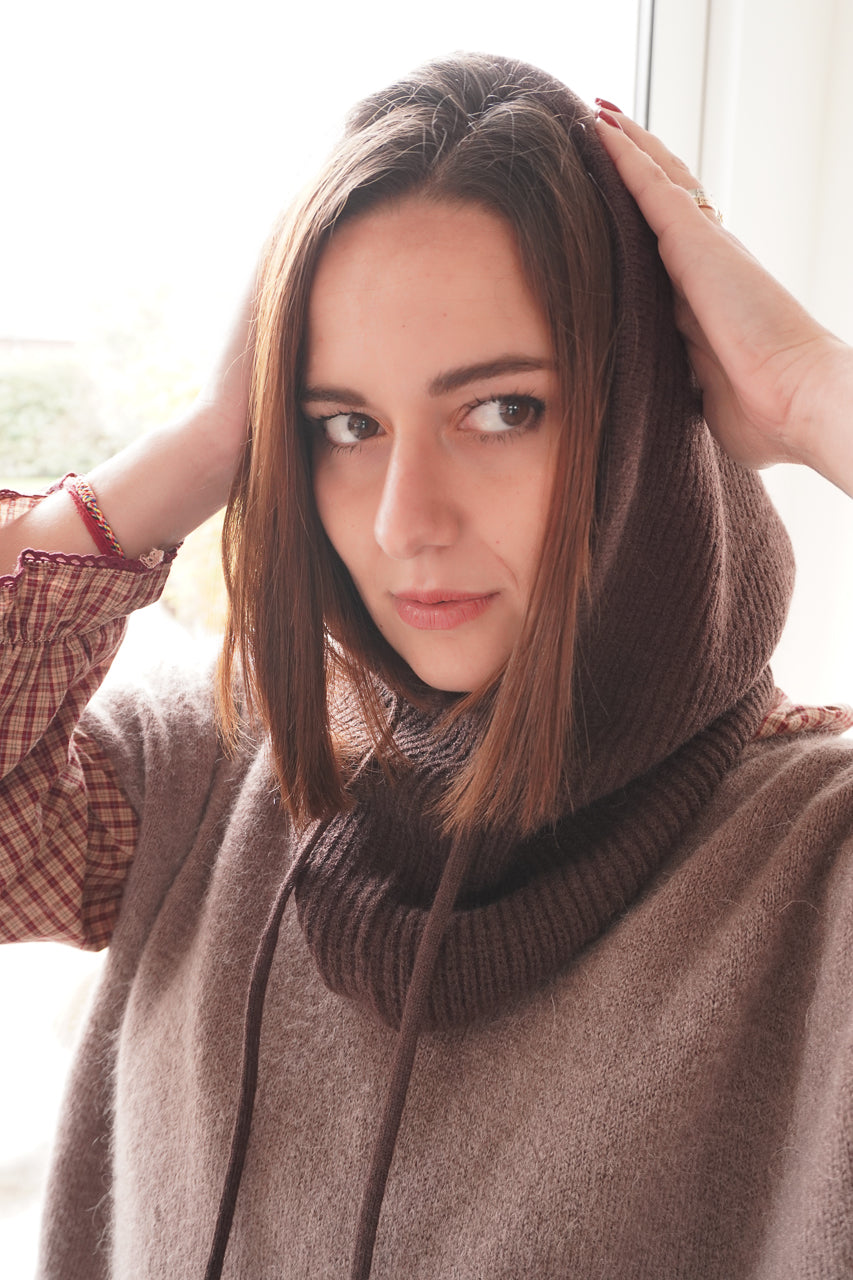 La cagoule Autriche revient dans un chaleureux coloris chocolat, parfait pour un look cosy et tendance. Avec sa coupe légèrement oversize, elle encadre le visage tout en apportant chaleur et style. Confectionnée en 80% acrylique et 20% laine, elle est douce, confortable et agréable à porter au quotidien. Ses deux ficelles sur l’avant ajoutent une touche moderne et féminine. L’accessoire idéal pour affronter l’hiver tout en restant stylée.