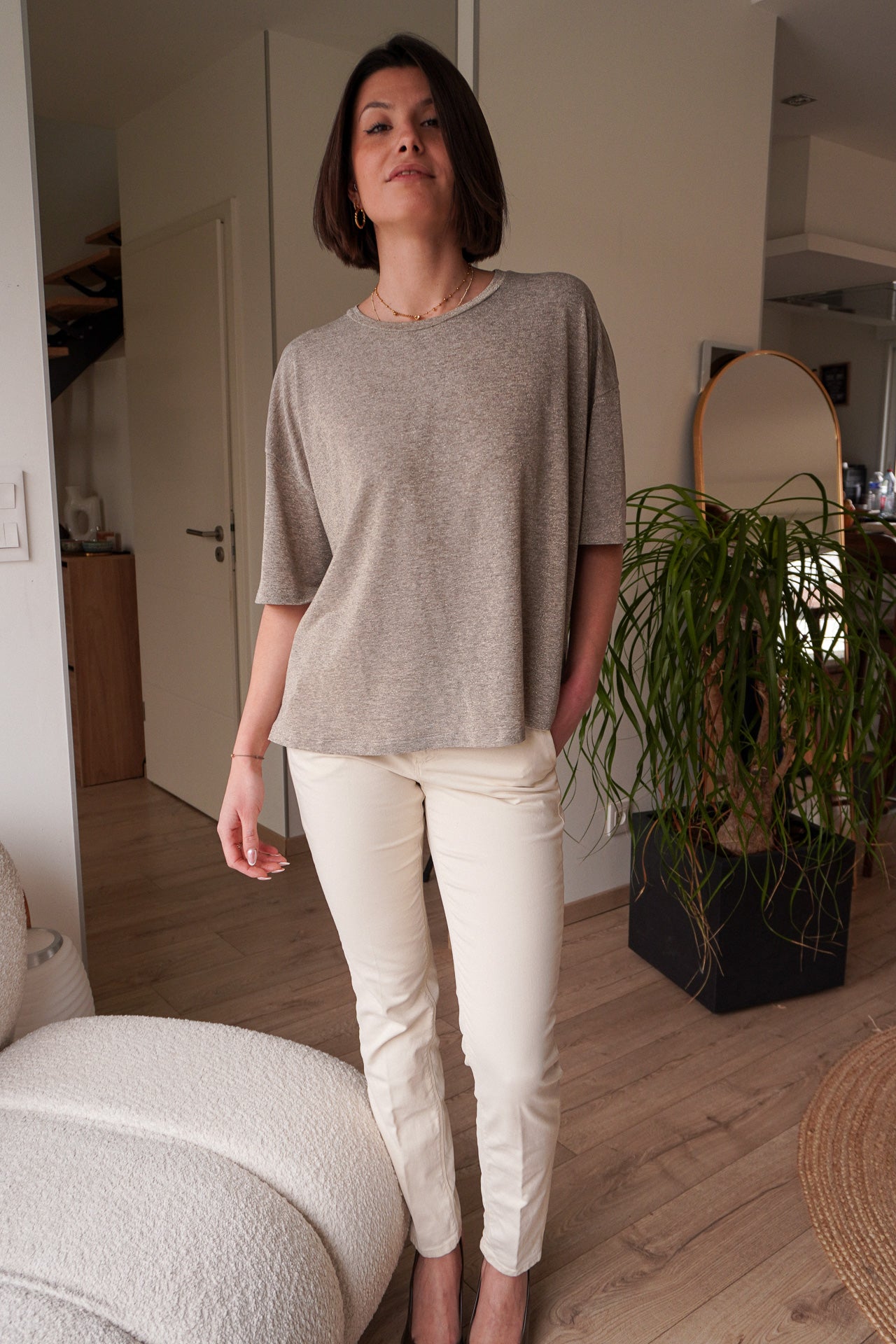 Avec son coloris blanc cassé raffiné, ce pantalon chino pour femme s’associe facilement à une chemise fluide pour un look habillé ou à un pull oversize pour une allure plus décontractée. Un basique revisité, pensé pour accompagner aussi bien vos journées de travail que vos week-ends en ville.