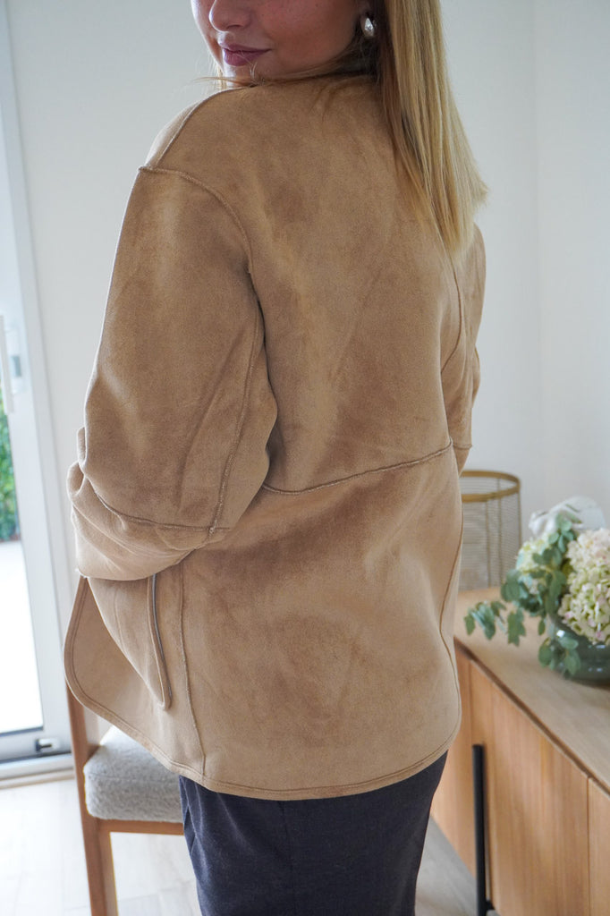 La veste Marie signée See U Soon allie style et praticité avec son design réversible : un côté effet daim camel, l’autre en fausse fourrure écrue toute douce. Parfaite pour s’adapter à vos envies du jour !