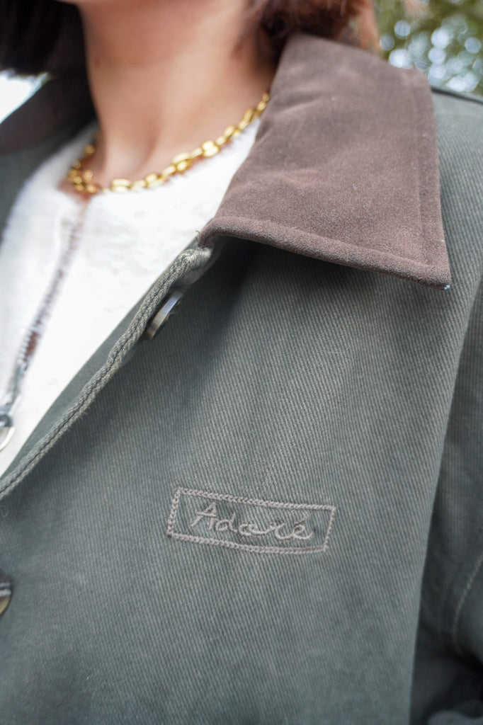 Inspirée de l’univers workwear, la veste Bachy signée Adoré Paris revisite la surchemise utilitaire avec une touche de féminité et beaucoup de style. Confectionnée en 100 % coton, elle séduit par sa coupe droite, ses grandes poches plaquées et son col contrasté en velours qui apporte une note élégante et automnale.