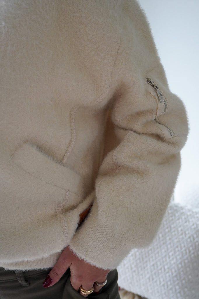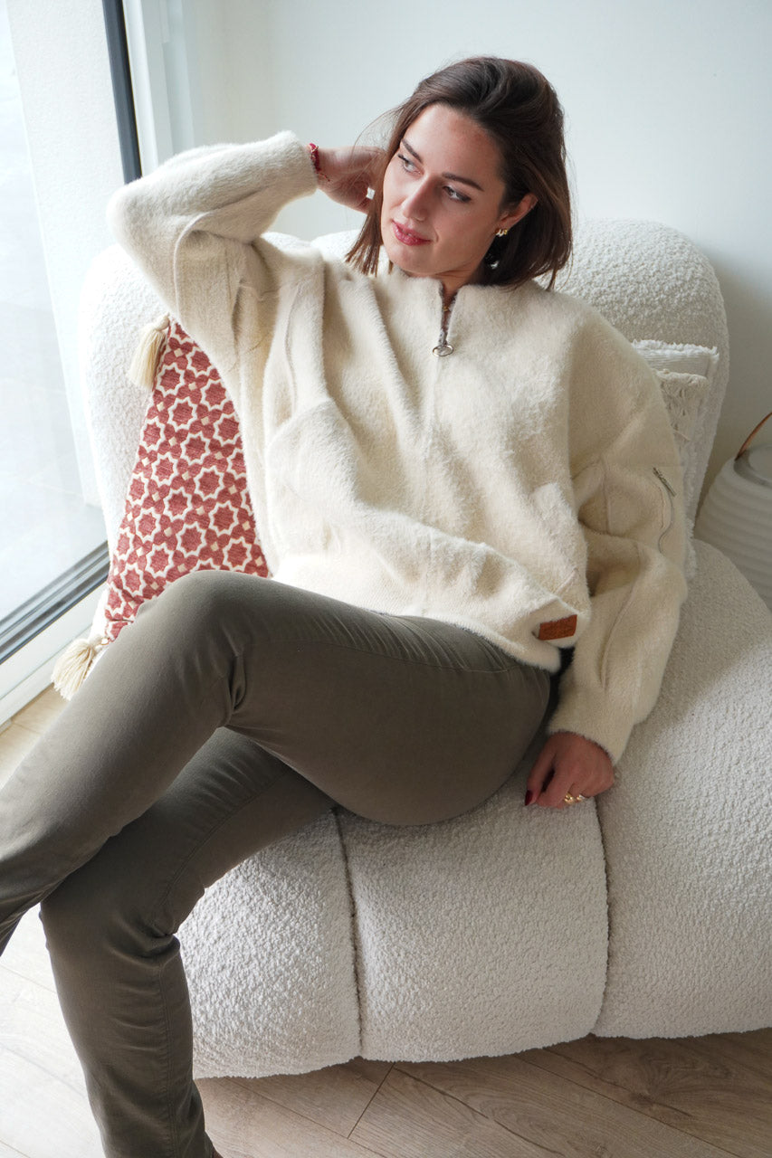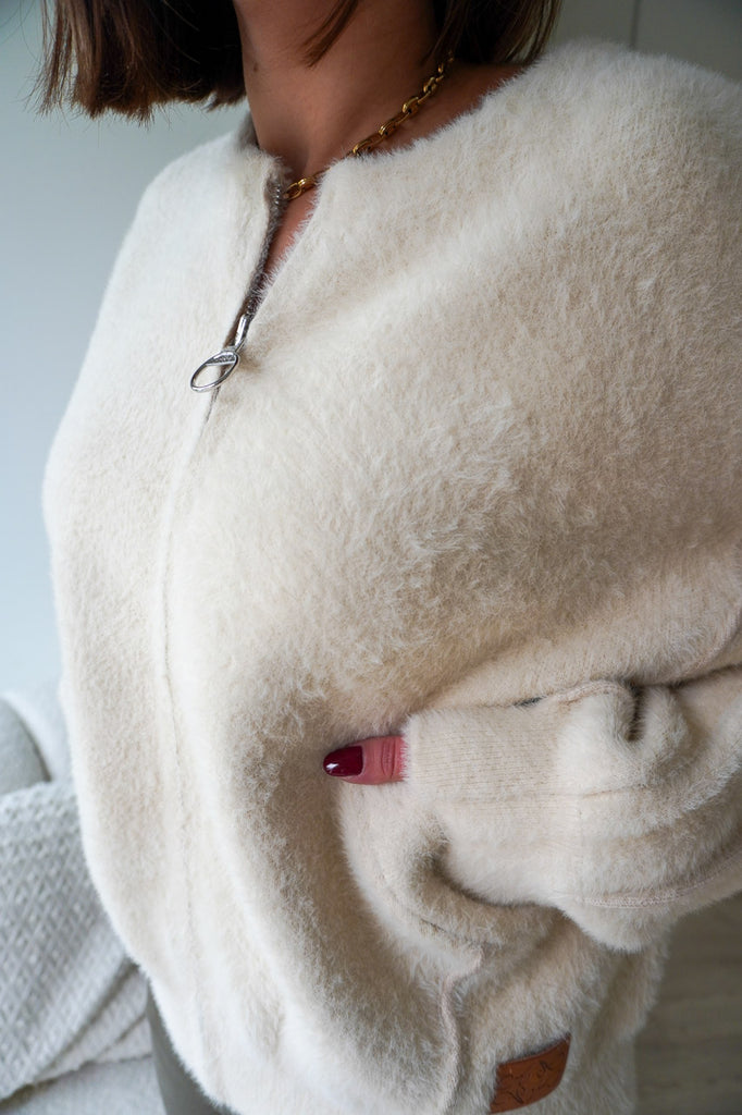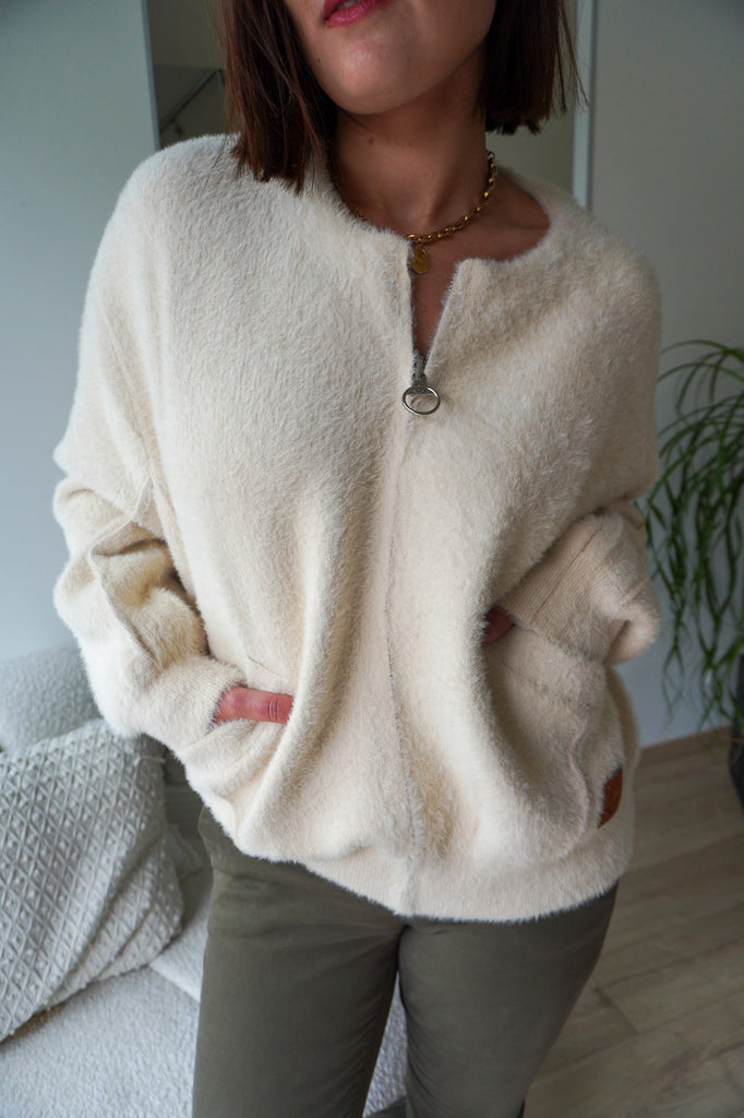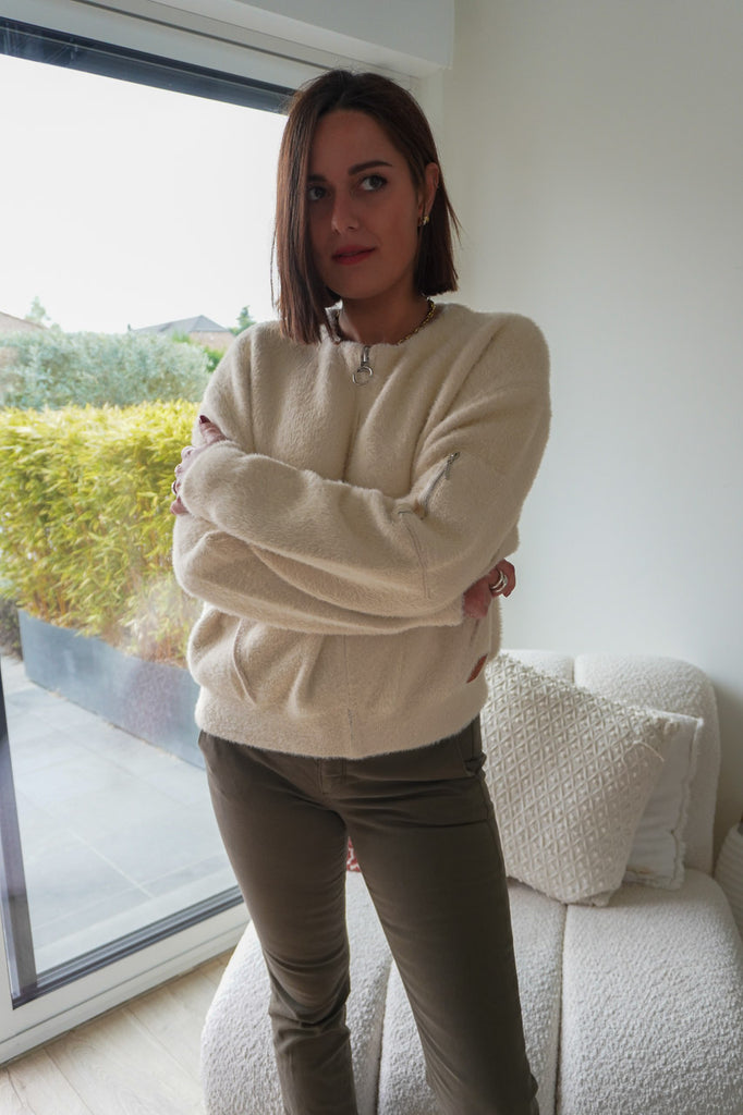 On aime sa coupe oversize zippée, ses poches plaquées et son coloris écru lumineux qui illumine le teint. À porter ouverte sur une chemise ou fermée façon pull pour un look cosy chic. Une pièce aussi confortable que stylée, parfaite pour les journées fraîches d’automne.