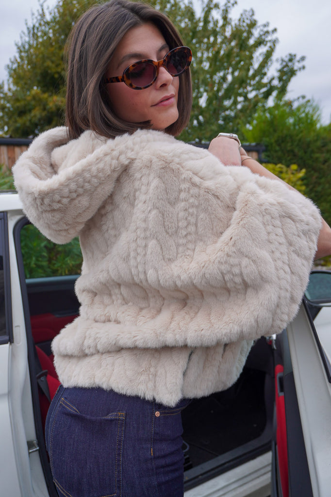 On aime ses manches ¾, sa capuche enveloppante et ses poches latérales discrètes qui la rendent aussi pratique que stylée. Parfaite pour réchauffer un look casual en jean ou sublimer une tenue plus habillée — une pièce coup de cœur pour affronter l’hiver tout en douceur.