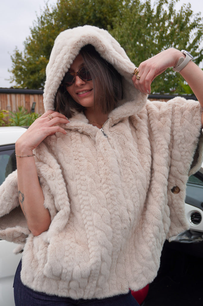 Douceur, chaleur et élégance : la veste Abella signée Adoré Paris coche toutes les cases du cocooning chic. Confectionnée en 100 % polyester, elle séduit par son effet fausse fourrure ultra moelleux et sa coupe poncho, à la fois ample et moderne.