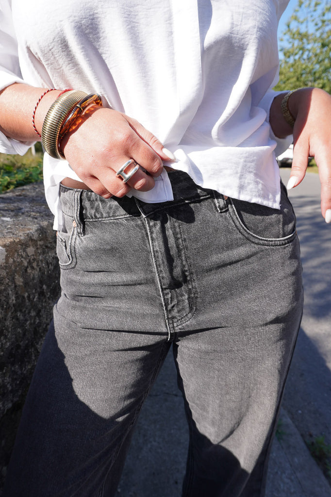 Avec sa coupe large et sa taille haute, ce jean noir femme dessine une silhouette actuelle et facile à porter. Associé à un t-shirt casual, il crée un look urbain, tandis qu’avec une chemise fluide et des bottines, il se fait plus sophistiqué. Un essentiel de la collection À contre saison, pensé pour conjuguer confort et style au quotidien.