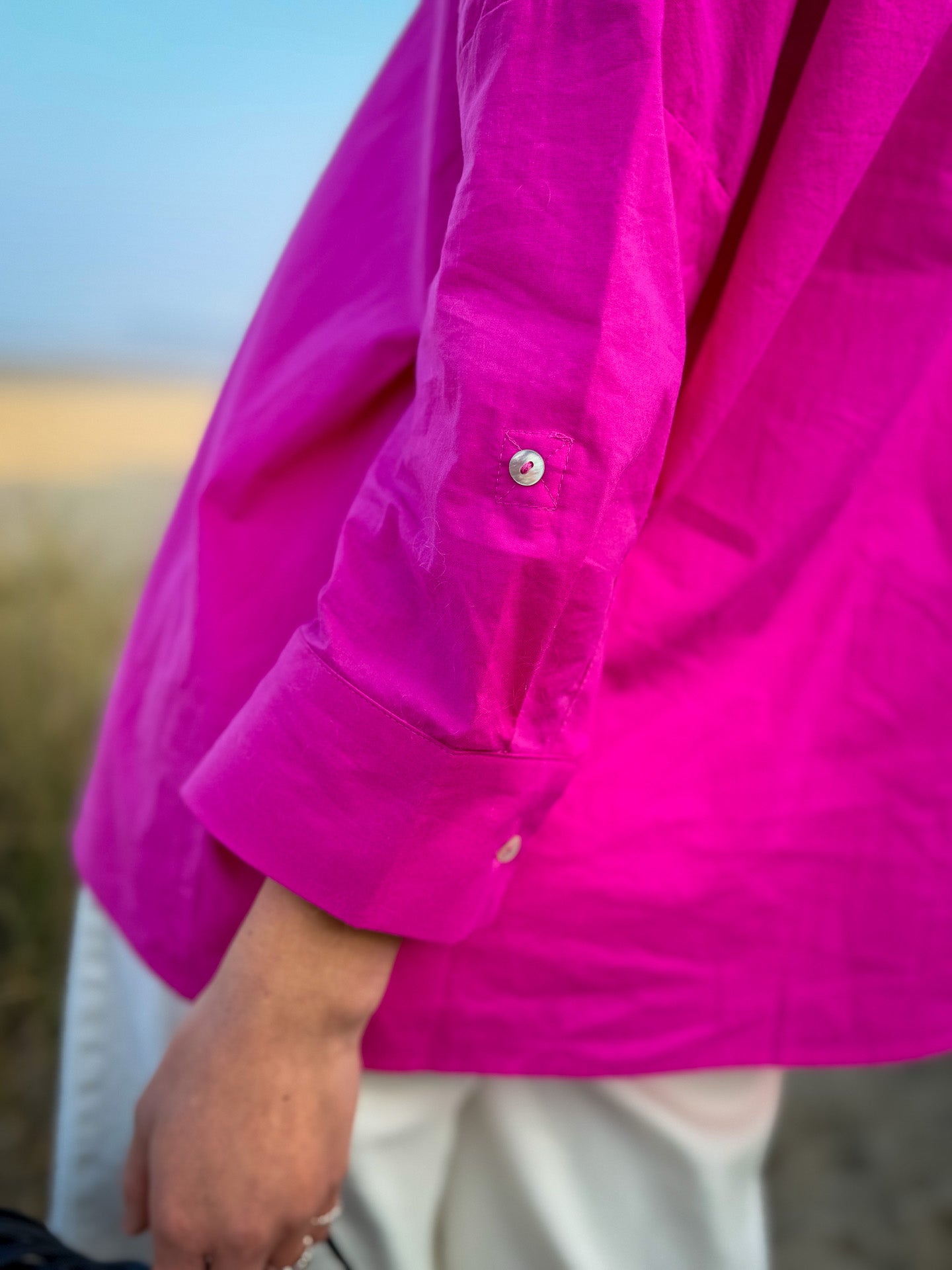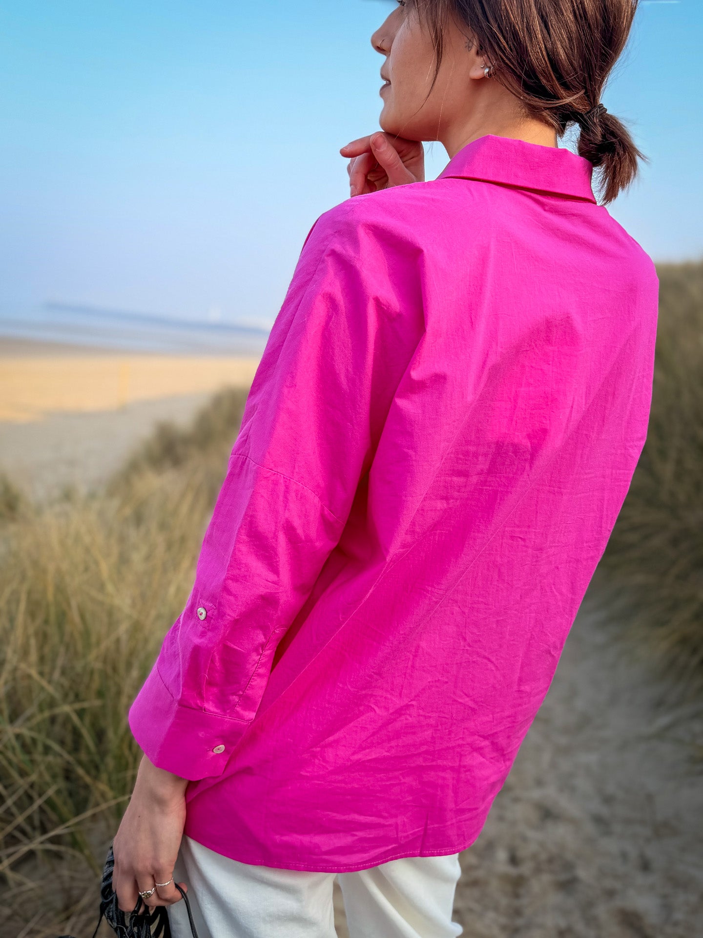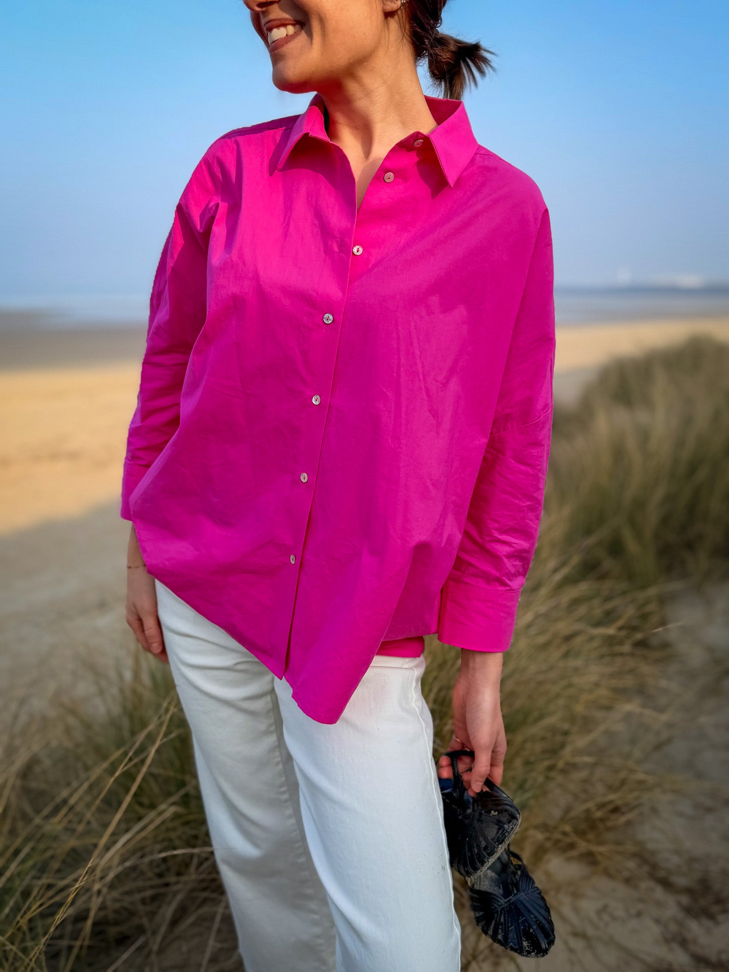 Impossible de passer à côté de la chemise Lemon de JC Sophie et de son rose fuchsia éclatant. Une pièce forte qui illumine immédiatement une silhouette et apporte une touche moderne et audacieuse à votre dressing.