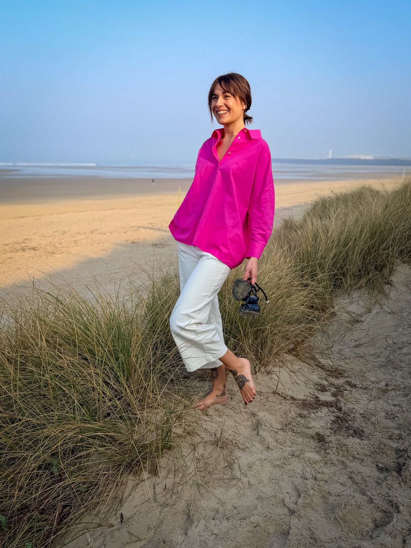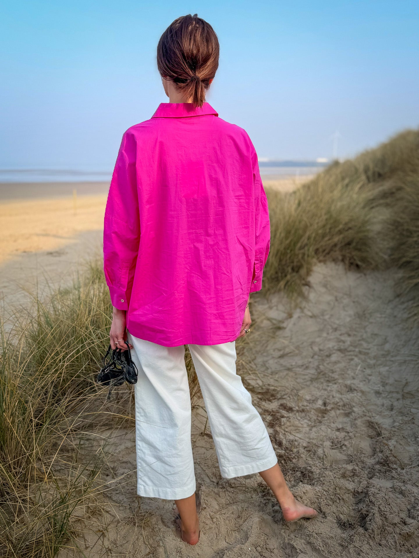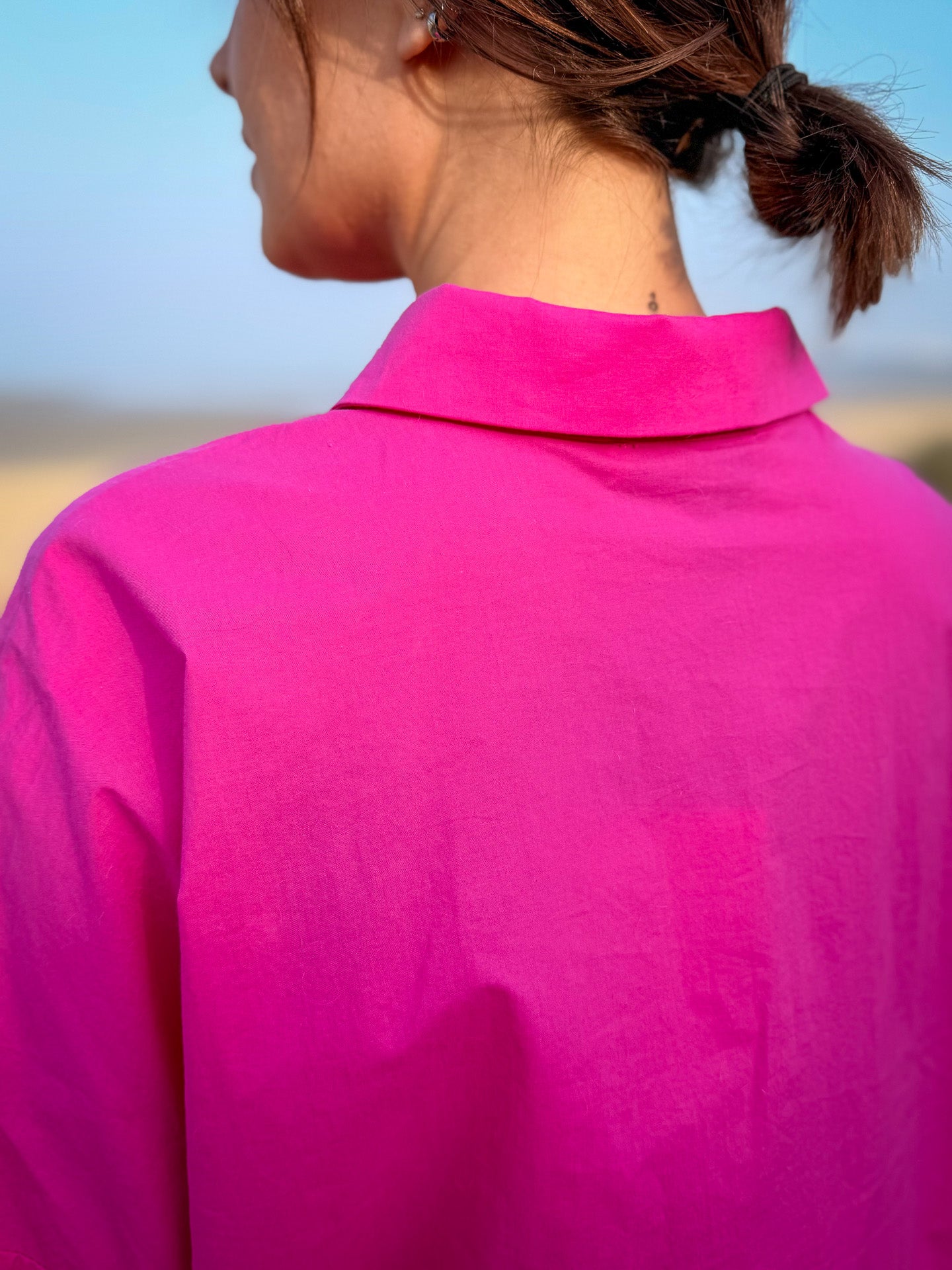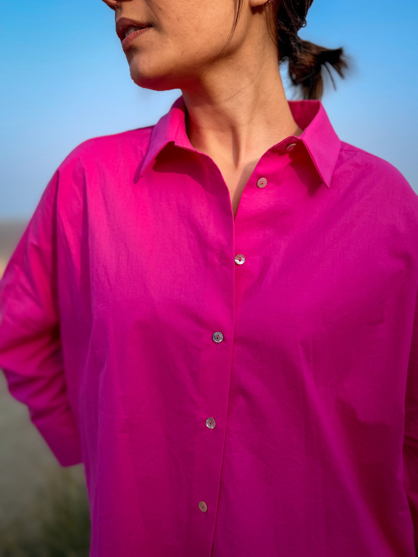 Impossible de passer à côté de la chemise Lemon de JC Sophie et de son rose fuchsia éclatant. Une pièce forte qui illumine immédiatement une silhouette et apporte une touche moderne et audacieuse à votre dressing.