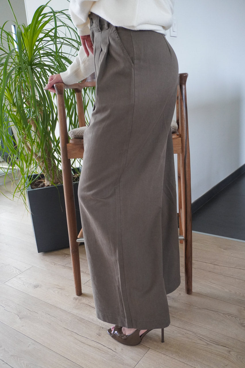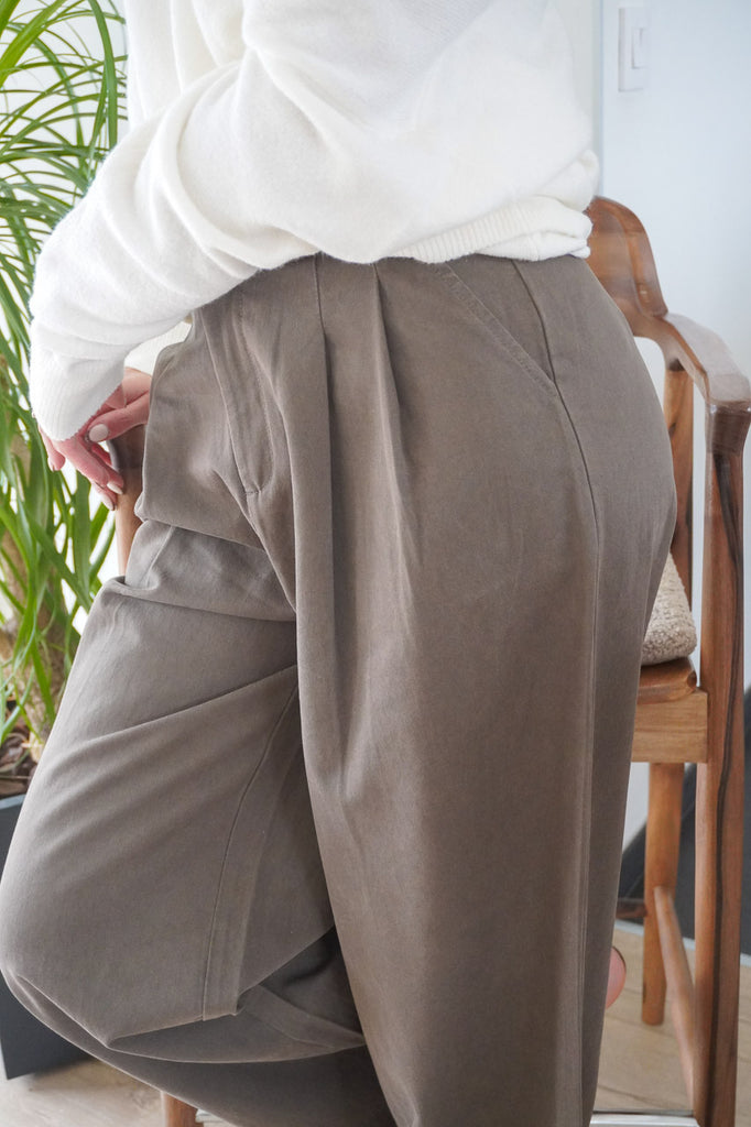 Alliance parfaite du confort et de la modernité, le pantalon Gaspard signé Feelko se distingue par sa coupe droite légèrement ample et ses pinces marquées à la taille. Sa matière fluide, composée de coton et de tencel, offre un tomber impeccable et un toucher doux au porter. Son coloris taupe élégant s’accorde à toutes les teintes de saison, du beige au bordeaux, pour des silhouettes à la fois naturelles et sophistiquées. Une pièce versatile, aussi chic avec des talons qu’avec des baskets, pensée pour la femme active au style affirmé.