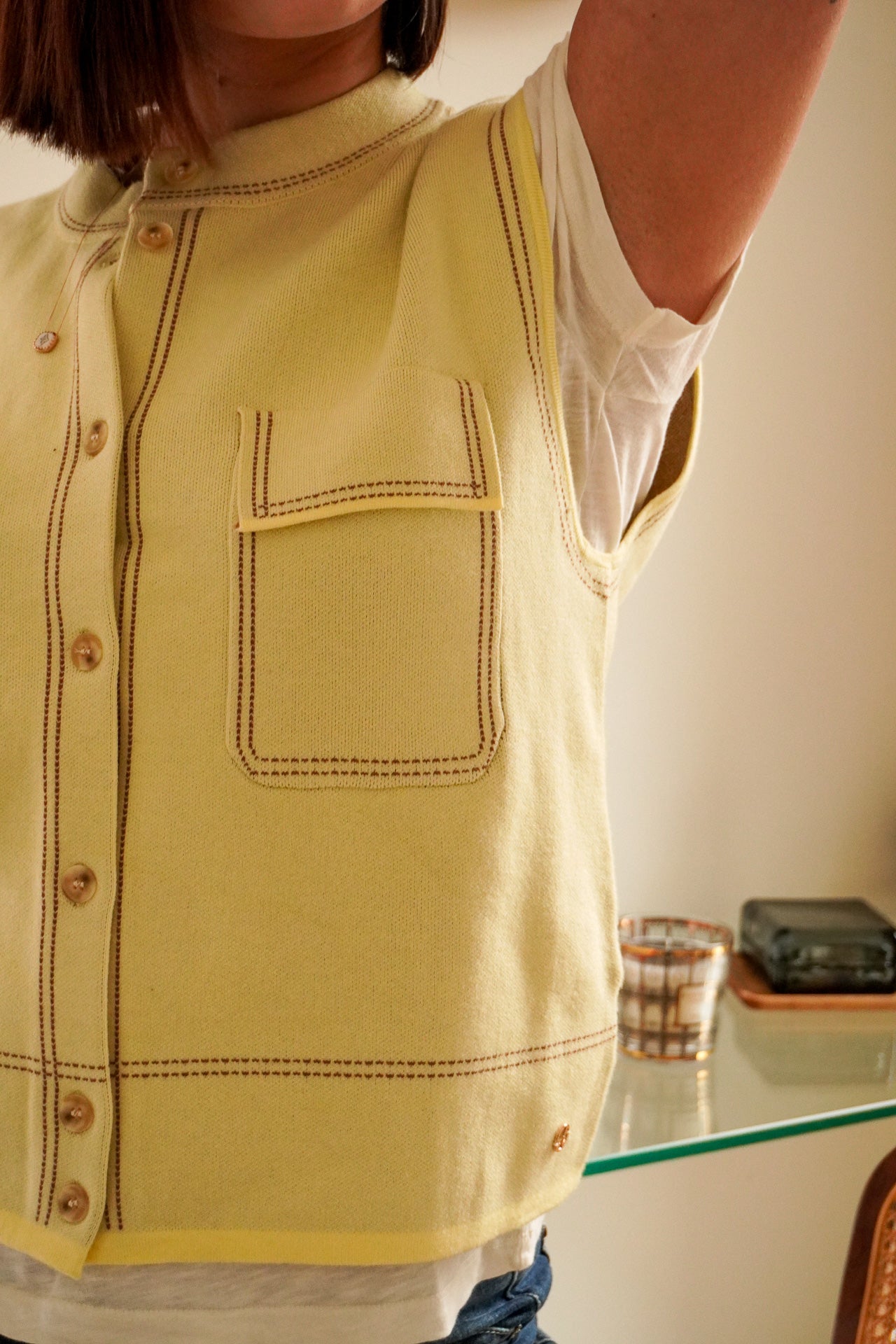 ✦ Gilet sans manches femme au coloris citron lumineux, parfait pour apporter une touche fraîche et tendance à vos tenues