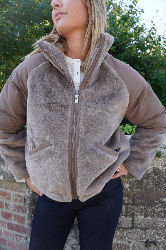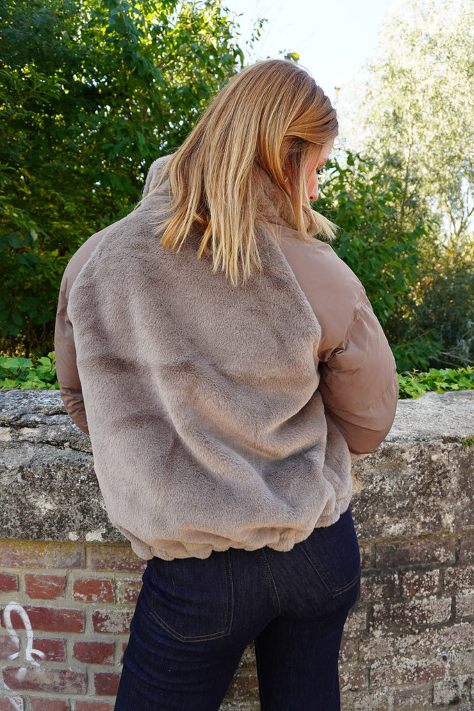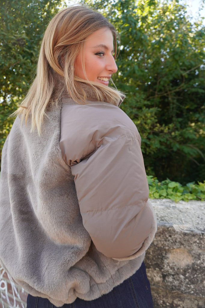 La veste Lola courte YAYA conjugue style et confort avec sa coupe moderne et ses matières contrastées. Sur le devant et à l’arrière, une fausse fourrure douce et moelleuse apporte chaleur et élégance, tandis que les manches matelassées aux larges emmanchures offrent une allure contemporaine. Son col montant et sa coupe ample en font une pièce tendance, idéale pour affronter la saison avec style.