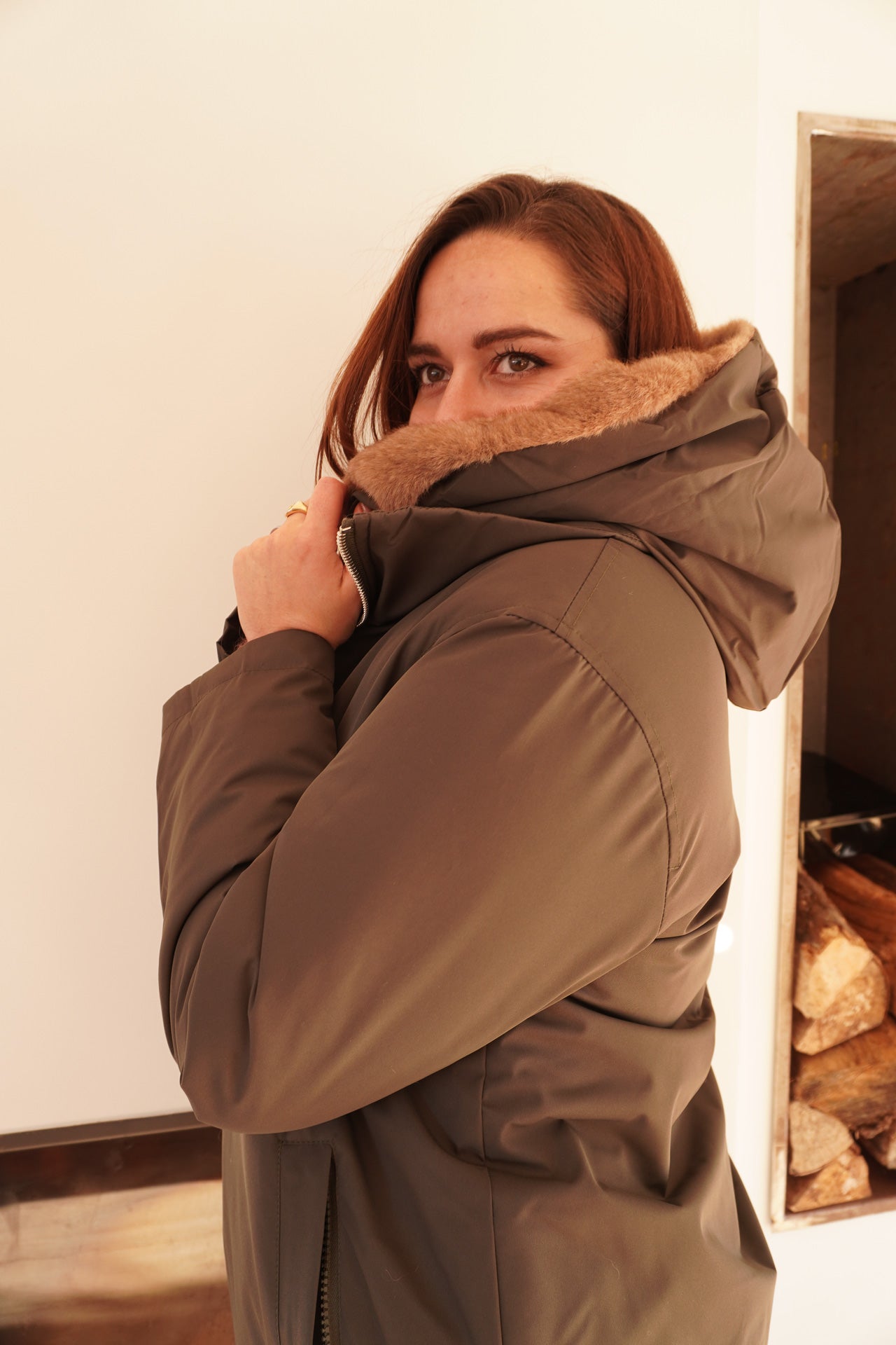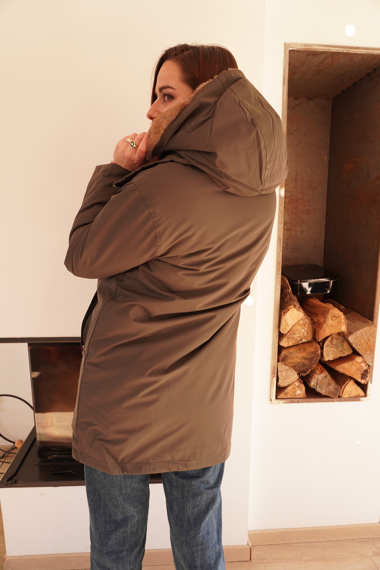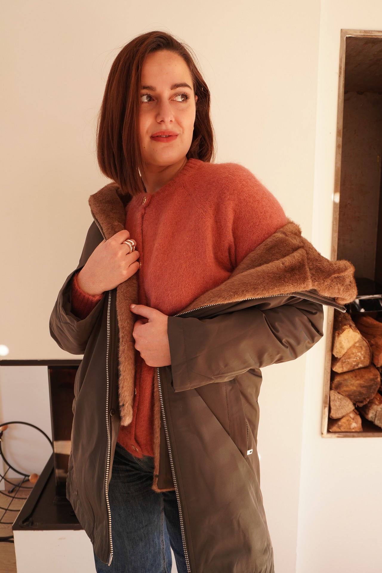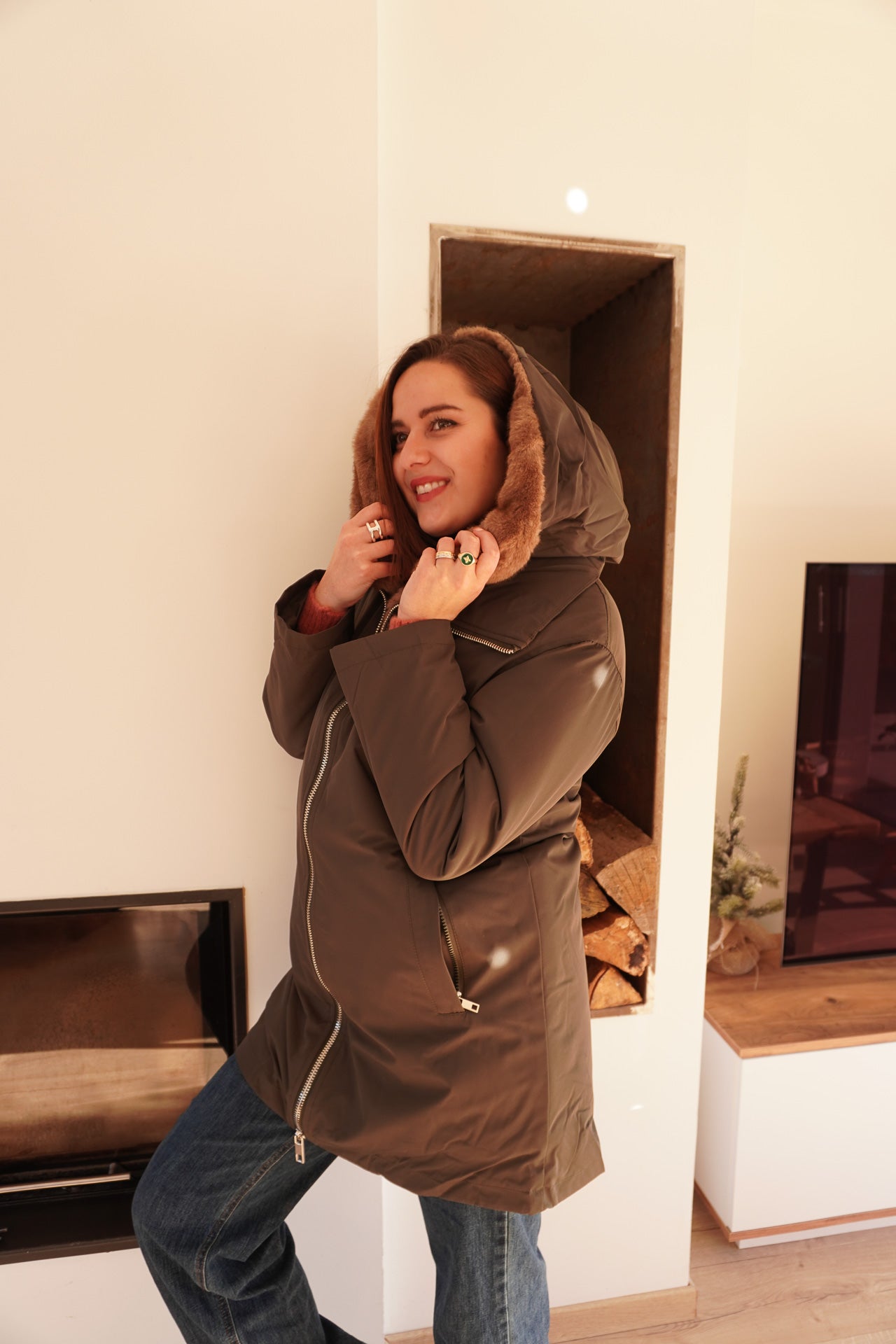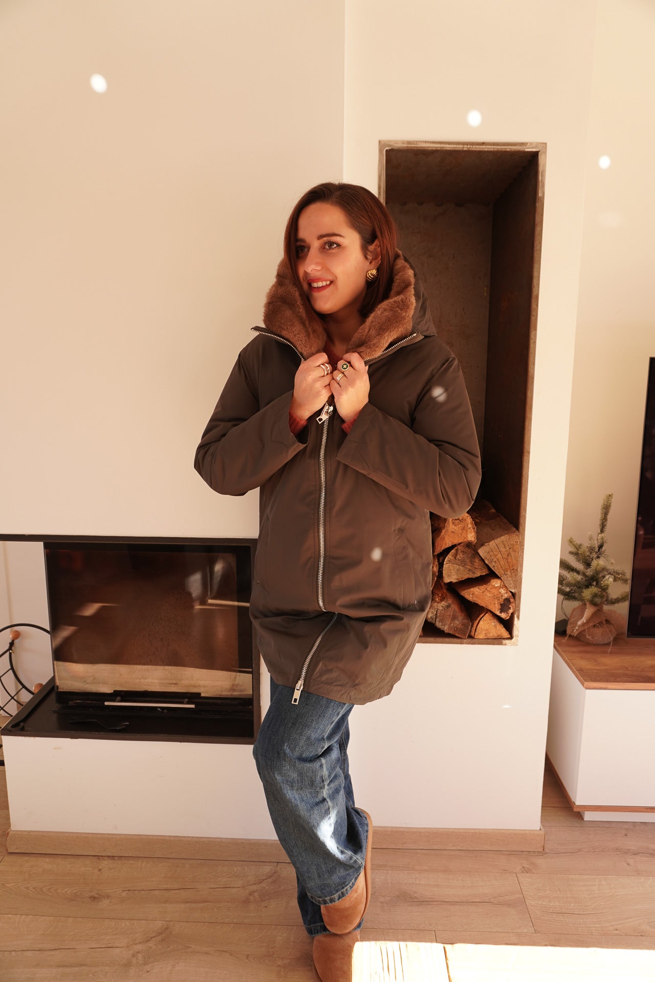 Le manteau Megan est la pièce chaude et réconfortante de la saison : un modèle pensé pour affronter l’hiver avec style et confort. Sa coupe longue protège efficacement du froid, tandis que sa doublure en fausse fourrure ultra-douce — entièrement amovible — offre un vrai cocon dès que les températures chutent.