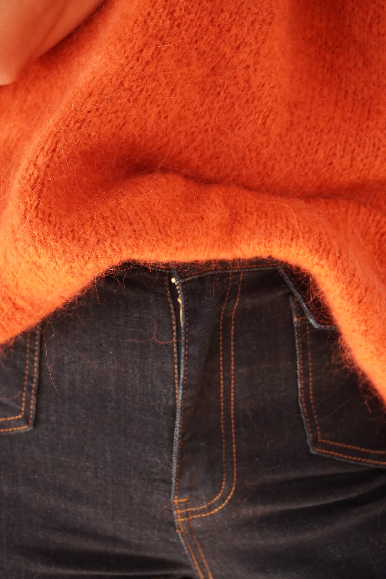 Chaud, doux et ultra-confortable, le pull Leina revient dans une version rouille qui réchauffe instantanément le teint. Son col roulé souple enveloppe sans serrer, parfait pour un look cosy et élégant à la fois. Sa maille mohair apporte du gonflant, une belle tenue et ce flou délicat qu’on adore en hiver.
