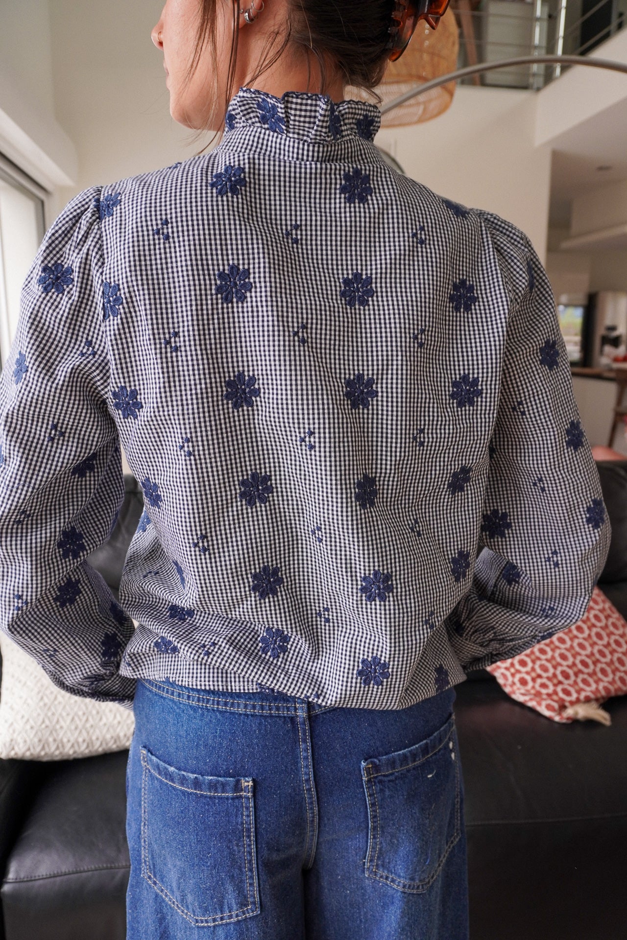 La chemise Stella Ycoo Paris séduit par son imprimé vichy délicat et ses broderies fleuries pleines de charme.
