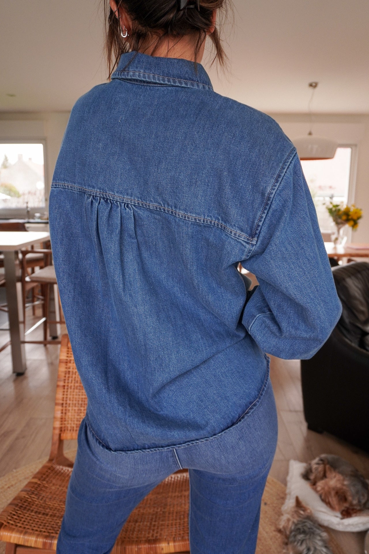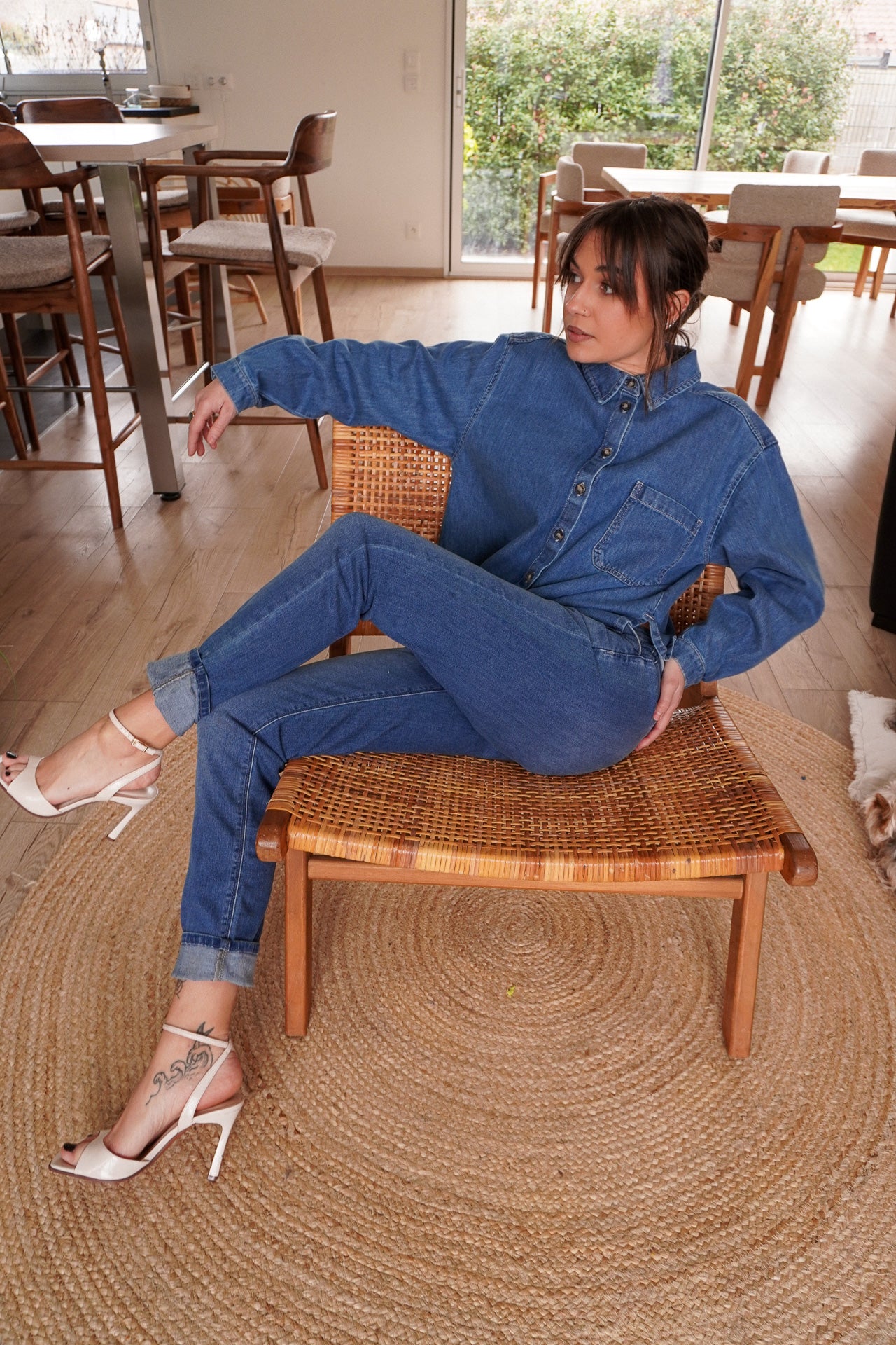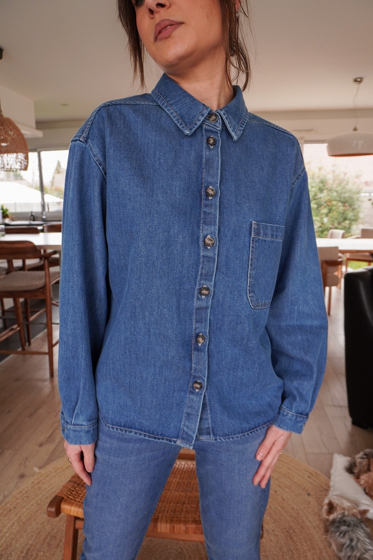 Avec sa coupe légèrement oversize et son denim souple, la veste Maya s’impose comme une pièce essentielle du dressing. Plus légère qu’une veste classique, elle se porte aussi bien ouverte comme une surchemise que fermée pour un look plus structuré.